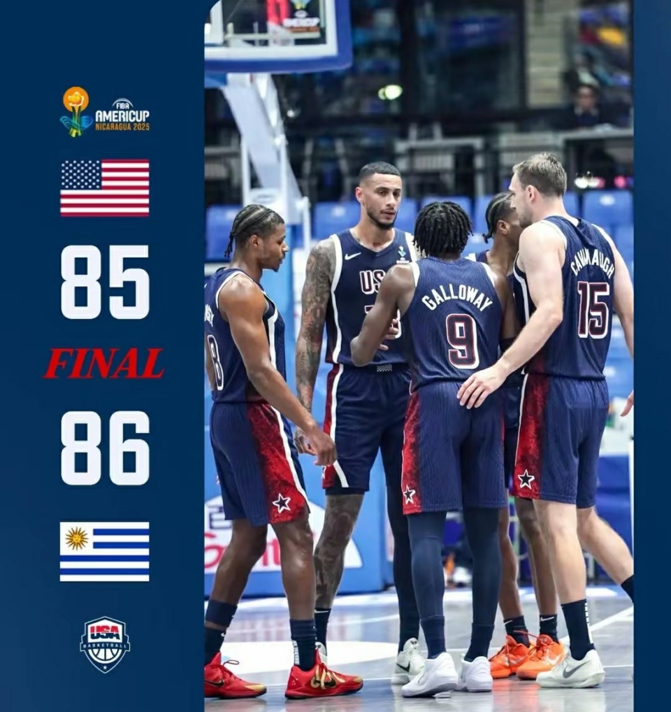 这支美国男篮在小组赛第一场通过加时才勉强战胜巴哈马,第二场比赛则是爆冷1分之差输给了乌拉圭。乌拉圭给了美国男篮很多机会,可惜最后的篮筐就像加了盖子,美国男篮死活投不进去。按照美洲杯的晋级规矩,各小组前两名和表现较好的两组第三名可以晋级8强。巴西男篮已经锁定了名额,乌拉圭只要战胜巴哈马就能够拿到晋级票。美国男篮则需要看巴西男篮的脸色,赢球才能晋级。